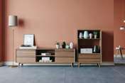 经过特殊调色处理的都灵雀眼枫,由行云流水般深浅交织的金色枫木剖切面构成。超大花纹的排版设计,减少了花色的重复,用于大面积空间效果极为逼真。表面纹理 EB 极致超哑面为单色带来自然哑光质感,适合单独大面积墙板或门板使用,可提升整体空间的艺术和自然气息。